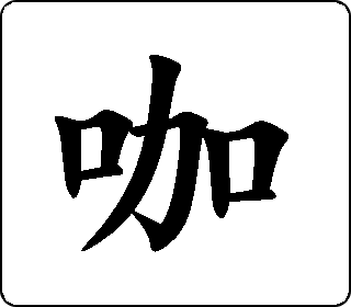 会意字。“口”像张开的口,“加”有增加义,表示咖啡是口喝后能增加人精力的饮料。本义是咖啡。