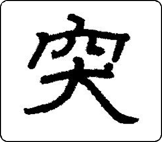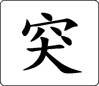 会意字。穴、犬,像犬从洞穴中窜出来。本义是犬从洞穴中猛然窜出。引申为猛冲、猛撞。