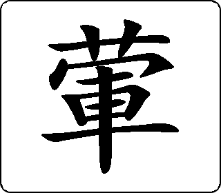 会意字。“艹”(艸)像草,“軍”(军)像战车围成的军营,军有攻击性,表示有刺激性气味的蔬菜。葷简化为荤。本义是姜、葱、蒜等有特殊气味的菜。引申为肉食。