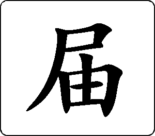 会意字。篆书“尸”像人蜷曲着身子,“凷”像筐中有土,指土块,表示路上有土块人行走不便。楷书“尸”像人,“由”像小道通入农田,表示到。本义是人行路不便。基本义是到。