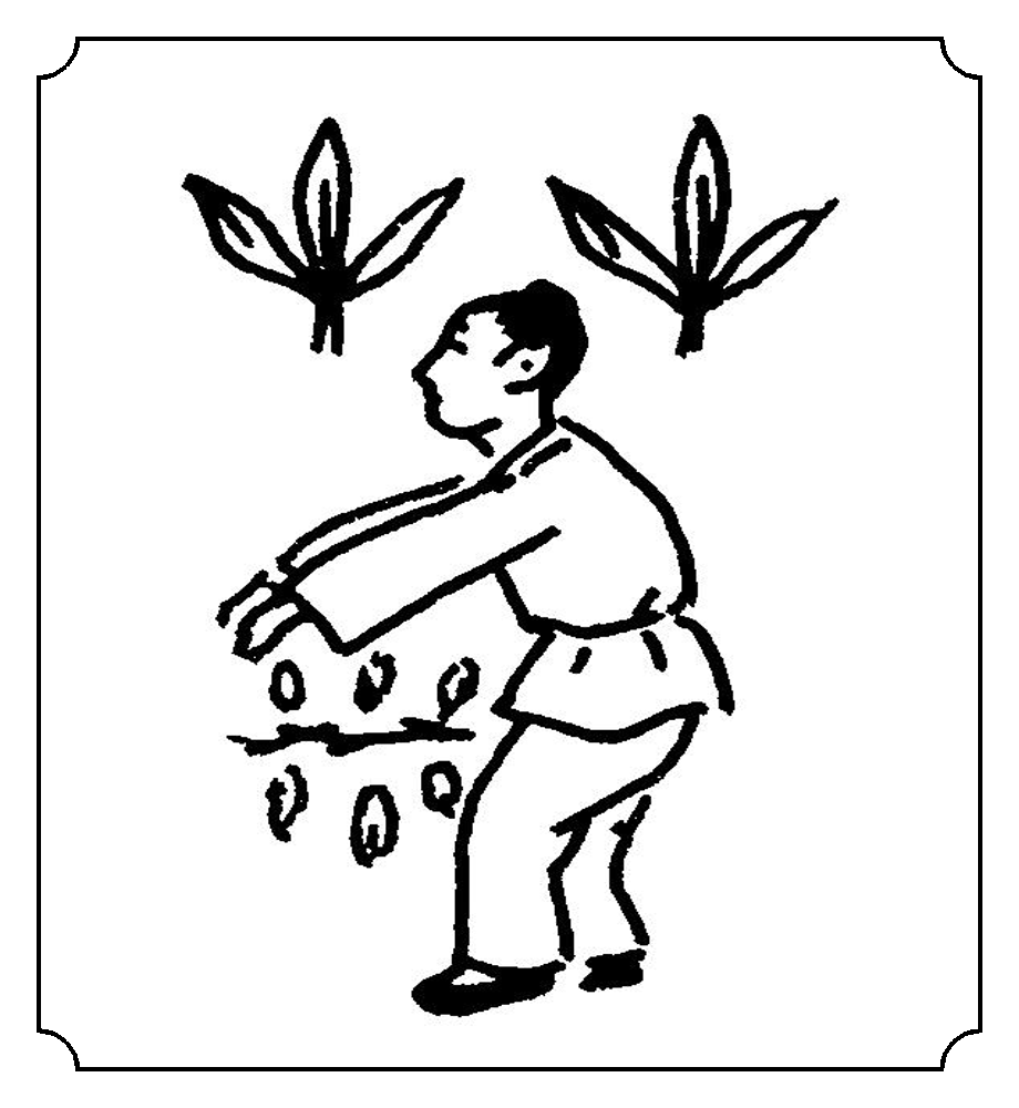 1.八十八旬少一日之草。 2.半包米上盖着草。 3.掬水浇花草,见花不见手。 4.头戴草帽手去掬。 5.半包花生米。 6.一句出口,粮草都有。 7.空手一掬花上露。 8.花前放着半包米。 9.两支小莺栖柳梢,一勾新月映花前。 10.草下藏半包米。 11.头戴草帽提半包米。 12.米在草包里。 13.门半掩映眉月,草木点点初萌。 14.半掬花上露。 15.肚里吃粮米,身背半个包,头上戴草帽,秋来花枝俏。