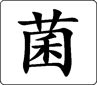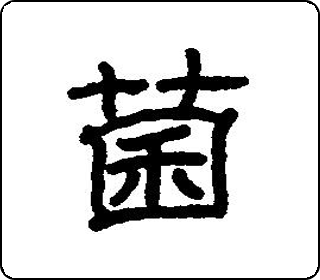 会意字。“艹”(艸)像草,表示菌类植物;“囷”指圆形谷仓,表示菌的形体像圆形谷仓。本义是伞菌类植物。引申为细菌。