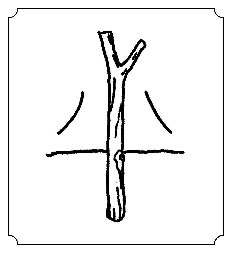 会意字。金文、篆书“弋”像插在地上的木桩,“八”像分开,表示分界的木桩。楷书“心”表示与思维有关;“丿”代表辨别,表示心必须对事物加以辨别和判断。本义是界桩。引申为一定。