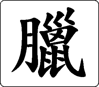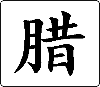 会意字。“月”(肉)像肉,“巤”像动物,表示用狩猎获得的兽禽作祭品。臘简化为腊。本义是一种祭名。