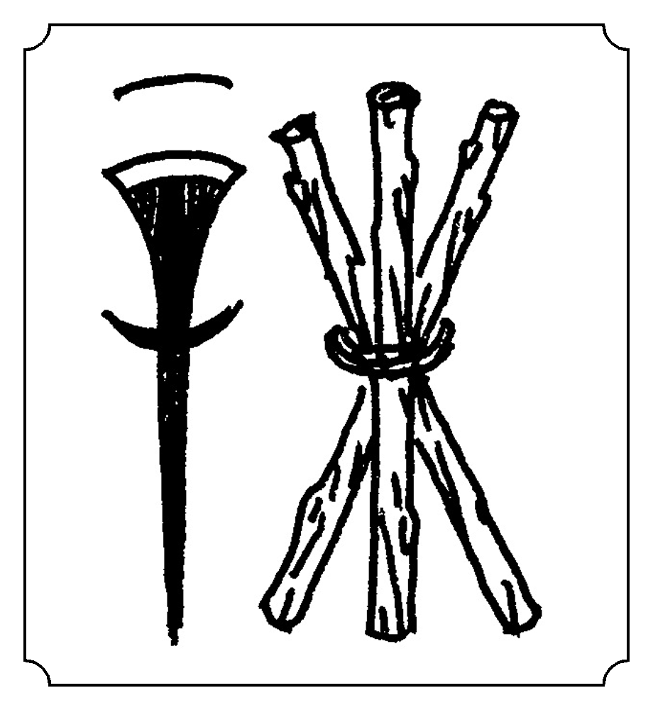 4.左立十字架,右口咬树木。