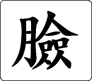 会意字。“月”(肉)像肉,表示面孔两颊;“僉”(佥)有皆、都义,表示人皆有脸、脸皆近似。臉简化为脸。本义指人的颧骨部分。引申指整个面部。