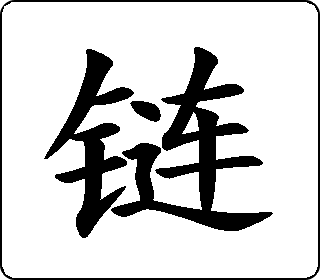 会意字。“金”(钅)像箭头、斧头和矿石,表示链由金属制成;“連”(连)表示链环环相连;連(连 lián)兼表声。鏈简化为链。本义是金属链。