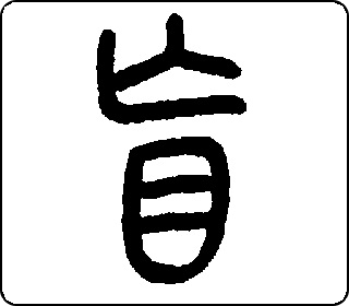 会意字。“目”像眼睛,“亡”指失去,表示眼睛失明。本义是眼瞎。