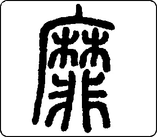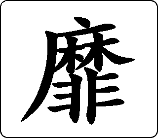 会意字。“非”像翅膀左右分张,“麻”像屋檐下晒着缕缕纤麻,表示相背、散乱。本义是散乱。引申为倒下。
