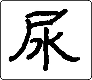 会意字。甲骨文像人站着小便。篆书“尾”像人臀部有条尾巴,“水”像水流,表示下身流出来的水。楷书“尸”像人,“水”像水流,表示人排泄出来的水。本义是小便。