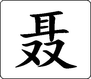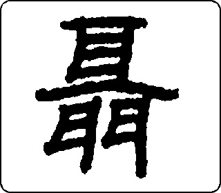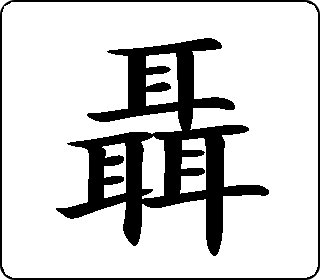 会意字。三个“耳”表示附耳私语声音轻,需尽耳力听。简体字耳、双,表示附耳私语需用双倍的耳力来听。本义是附耳私语。今作姓氏用字。