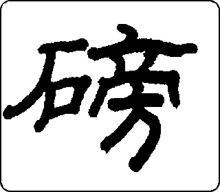 形声字。石表意,像山崖下有块大石头;旁(páng)表声,兼表磅是石头落在一旁所发出的声音。本义是石头落地声。