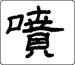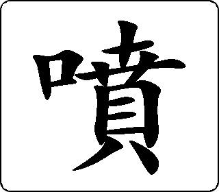 会意字。“口”像张开的口,“賁”(贲)通奔,有速度快义,表示从口中喷出。噴简化为喷。本义是从口喷出。