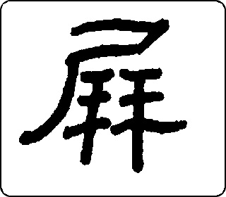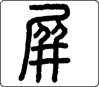 会意字。“尸”像人,“并”指并合,表示屋外对着门的小墙,屏与屋相对形成整体。本义是照壁。引申为屏风。