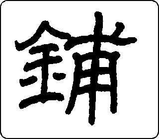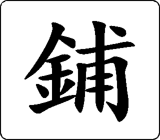 会意字。“金”(钅)像箭头、斧头和矿石,“甫”有美好意,表示门环的金属底座。鋪简化为铺。本义是门环的底座。