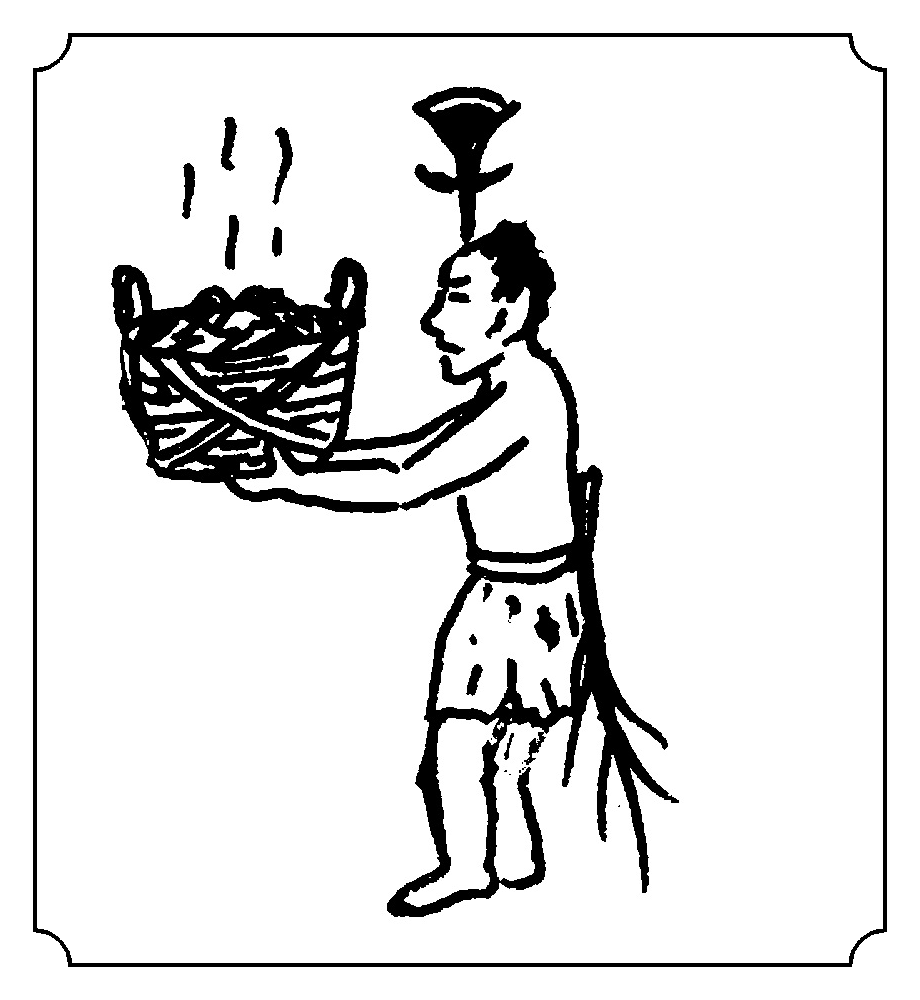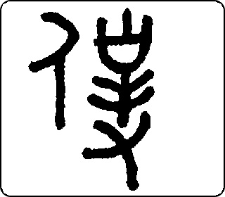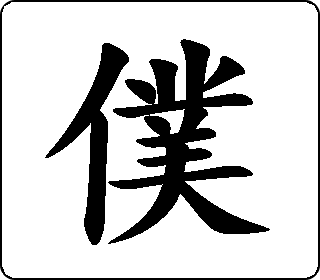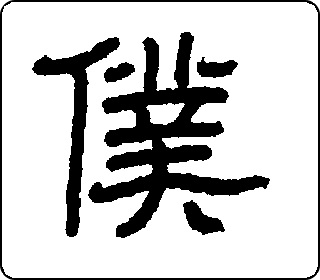 会意字。甲骨文像头上有刑刀,手捧畚箕,身附尾饰的罪人、奴仆。简体字亻、卜,卜本有仆人义。本义是仆人。