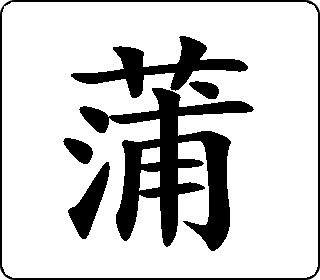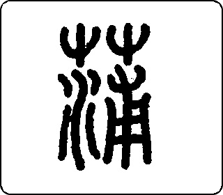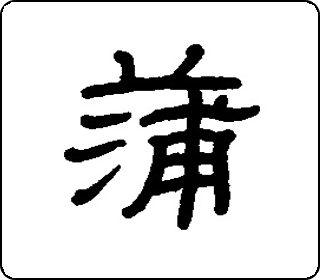 会意字。“艹”(艸)像草,“浦”指水滨,表示香蒲生长在水滨,浦(pŭ)兼表声。本义是香蒲。