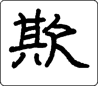 形声字。欠表意,像人张口呼气,表示张口欺骗他人;其(qí)表声,其是代词,指代被欺骗的人。本义是欺骗。