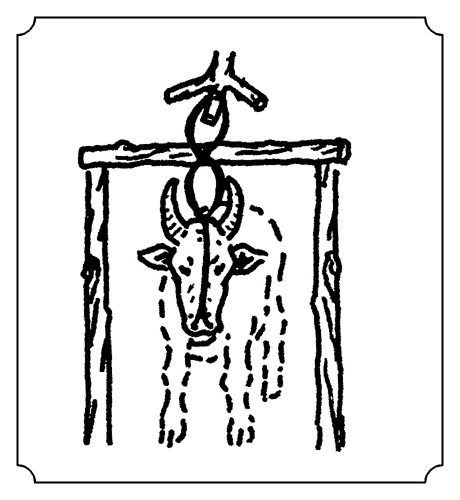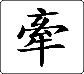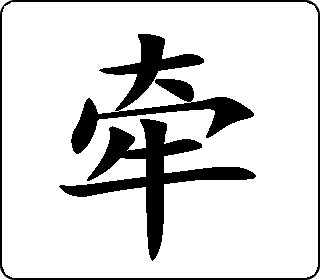 会意字。“牛”像牛,“玄”像绳,“冂”像门框,像牵着绳将牛拉出牛棚。简体字大、牛、冖,表示大力拉牛出棚。本义是拉。