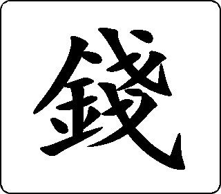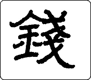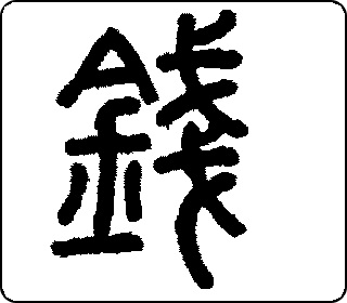 会意字。“金”(钅)像箭头、斧头和矿石,“戔”(戋)有小义,表示用来挖土使其变小的铁铲。錢简化为钱。本义是铁铲。后指货币。