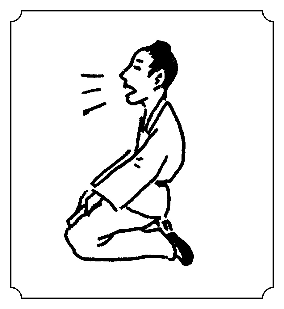 身体稍微向上向前,做想要站起的姿势,表示对人恭敬。