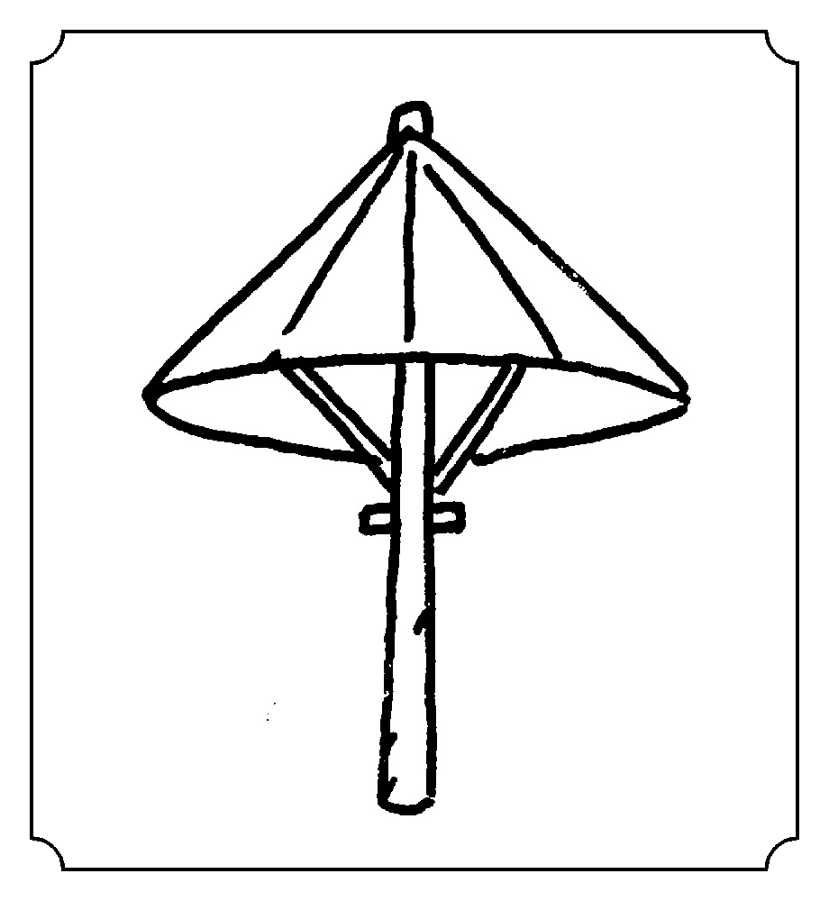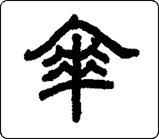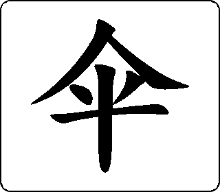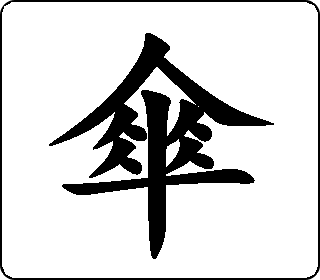 象形字。像挡雨遮阳的车篷。简体字像一把伞,勾画出伞面、伞骨、销子和伞把。本义是车篷。引申指挡雨、遮阳的器具。