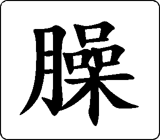 会意字。“月”(肉)像肉,表示猪油的腥臭味;“喿”像树(木)上众口张开,指虫、鸟喧叫,很远能听到,表示臊味很远能闻到。本义指猪油的腥臭气。