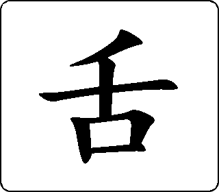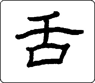 象形字。像张开口伸出舌头(以舌脉表示舌头)。本义是舌头。
