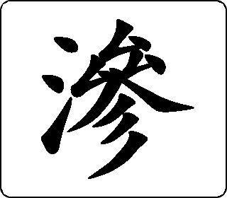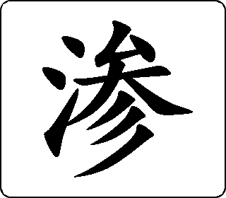 形声字。氵表意,像流水、水珠,表示水向下渗漏;參(参shēn)表声,参是星名,星光微弱而向外闪烁,表示水向下或向外渐渐透过或漏出。滲简化为渗。本义为渗漏。