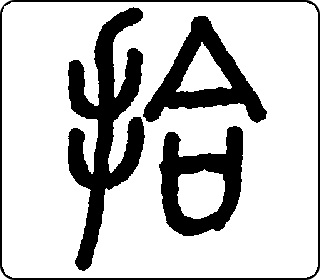 会意字。“扌”像手,“合”像器皿和盖子,有凑到一起义,表示拾取东西时手与物凑合在一起。本义是捡起来。