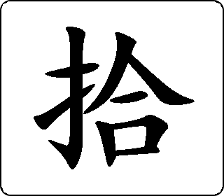 ①从地上捡起来:拾金不昧。 ②收拾:拾掇。 ③数目字“十”的大写。