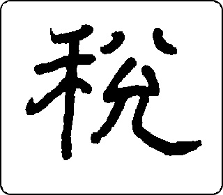 会意字。“禾”像谷类植物,古时农民以谷物交租,表示田租;“兑”像人张口发出笑声,农民缴税对国家尽了义务,官府课税后府库充实,皆大欢喜。本义是田租。泛指赋税。