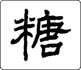 形声字。米表意,像稻米,表示饴糖用米麦制成;唐(táng)表声,唐有大义,用米麦制糖需先将其蒸熟再发酵,故体积会变大。本义是饴糖。