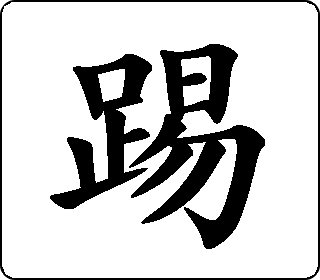 会意字。“足”像膝盖和脚,表示用脚踢;“易”有改变义,表示物被踢则改变了位置。本义是抬脚击物。