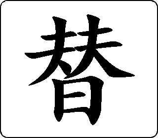 ①衰败:兴替│衰替。 ②代;代理:替代│替换│顶替。 ③为:你高兴。