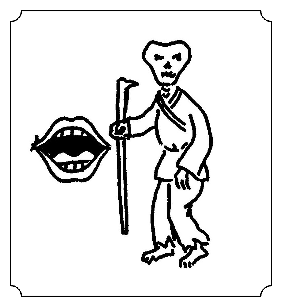 1.无口令人害怕。 2.加口不是畏。 3.害怕只少两点。 4.呆头呆脑,丧失前面,准备后面。 5.告诉下面,男丧一半。 6.因小失大,鱼腰丧失一半。 7.畏惧台下。 8.畏惧增加后。 9.名下田亩丧失前。 10.男丧一半,吵架减少。 11.畏惧吠犬。 12.告诉下面,有人可依靠。 13.害怕只取其上。 14.十张大口丧失前面下唇。 15.问心生畏。 16.一方一半男。 17.一方衣甲不全。 18.呆头呆脑,衣甲不全。 19.害怕因小失大。 20.后生可畏。 21.畏惧这口子。 22.一方畏缩不前。 23.不敢开口。 24.一方胆小。