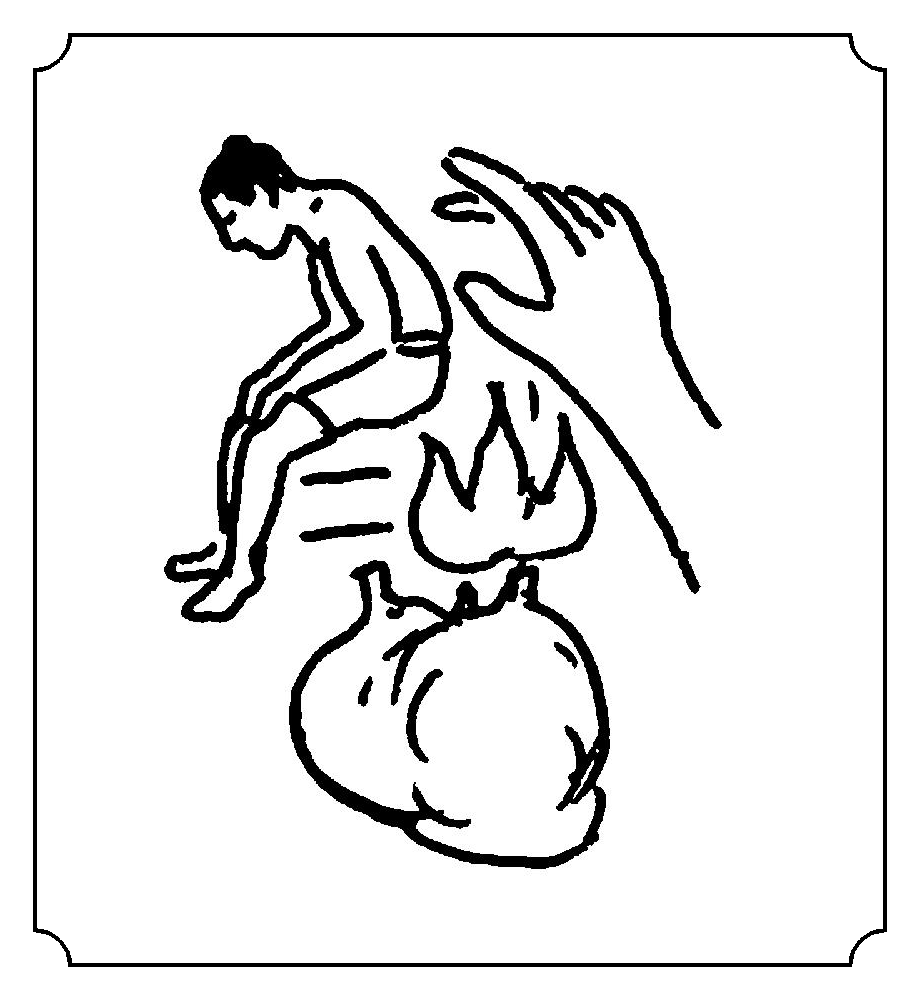 16.新月一钩,疏星三点,屋中两小,身高一寸。