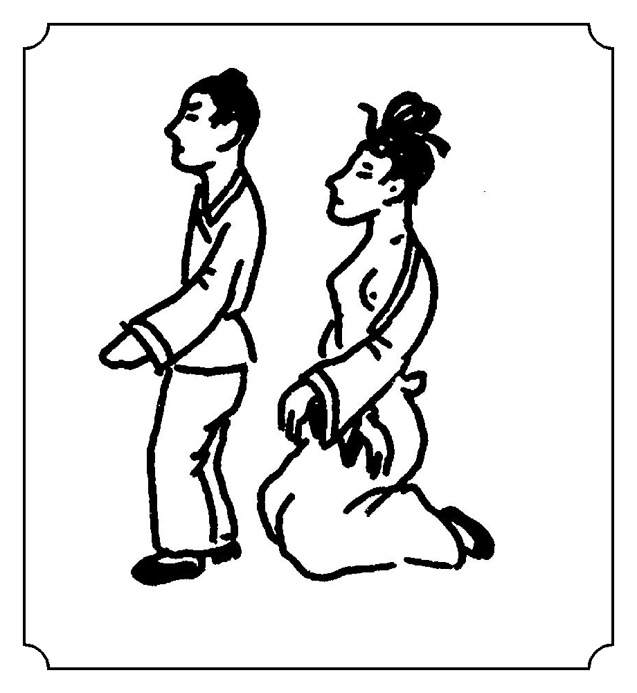 30.一人横卧母前,一人侧立母旁,都不尊重母亲。