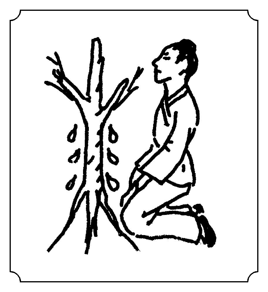 1.左边无日也亮,右边有水便黑。 2.月儿旁边照,木人水上漂。 3.月照树下水边人。 4.树下水边人明日走。 5.树下水边人前朋友走散。 6.明天日全食,树下水上人观赏。 7.一个月后,油漆干了。 8.月夜水上漂木人。 9.淡淡池边月,依依柳下人。 10.月照木人水上漂。 11.左右交漆亲 12.先胶后漆。 13.前有林一片,后有水一条,人在期间住,明月来相照。 14.池边月,柳下人。