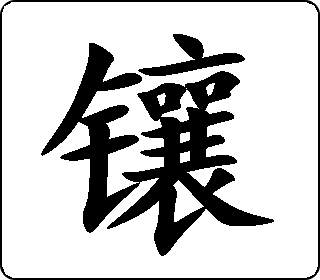 形声字。金(钅)表意,像箭头、斧头和矿石,表示金属铸器的内模;襄(xiāng )表声。鑲简化为镶。本义是铸器的内模。引申为镶嵌。