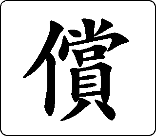 会意字。“亻”像人,表示将钱或物还给别人;“賞”(赏)有称赞义,表示偿还财物时应称赞和感谢对方。简体字亻、尝,表示人还债时必已尝到借债的好处或坏处,尝(cháng )兼表声。本义是归还。