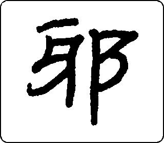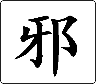 会意字。“阝”(邑)篆书像住地和人、楷书像山地,“牙”同衙,指古代官府,表示邪是地名。邪本义指琅邪郡。基本义是不正当、不正派。