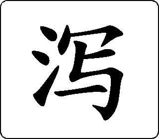 形声字。氵表意,古文字像水流,楷书像水珠;寫(写xiĕ)表声,写有书写义,书写的顺序是自上向下,表示泻是水自上向下急流。瀉简化为泻。本义是水向下急流。