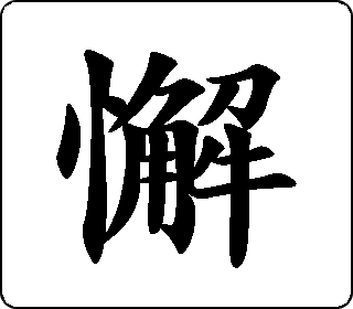 会意字。“忄”像心脏,“解”像用刀割下牛角,有分散意,表示心志分散。本义是放松、不紧张。