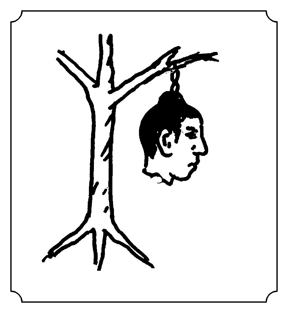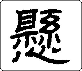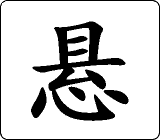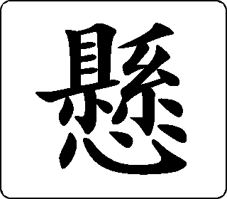 会意字。金文像树上挂着人头。篆书像倒反的头颅和系挂的绳子。楷书、简体字心、縣(县),表示心中有牵挂。本义是挂。