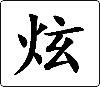 形声字。火表意,像火焰,表示火光耀眼;玄(xuán)表声,玄有幽远义,表示火光能照及幽远处。本义是火光照耀。