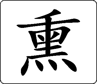 会意字。像火焰将烟囱熏黑,表示烟熏。本义是火烟上出。基本义是烟火熏烤。