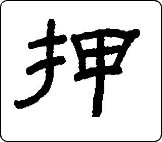 会意字。“扌”像手,表示用手签名或画符;“甲”是护身的皮革,表示押是取得保证的凭信。本义是签字或画符号。