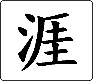 会意字。“氵”像河水、水珠,表示水边;“厓”像山崖和重叠的土,表示水边多山崖或高地;厓(yá)兼表声。本义是水边。