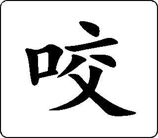 会意字。篆书“齒”指牙齿,“交”指相合,表示上下牙相合把东西夹住或切断。楷书口、交,表示口中牙齿夹住或切断东西。本义指用牙齿把东西夹住或切断。